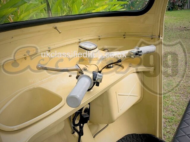 Finished in a Cream, this compact three-wheeler blends classic aesthetics with practical everyday utility. The clean cabin, new upholstery, and fully refurbished cargo bed make it perfect for cafés, retail displays, pop-up events, or private collections.